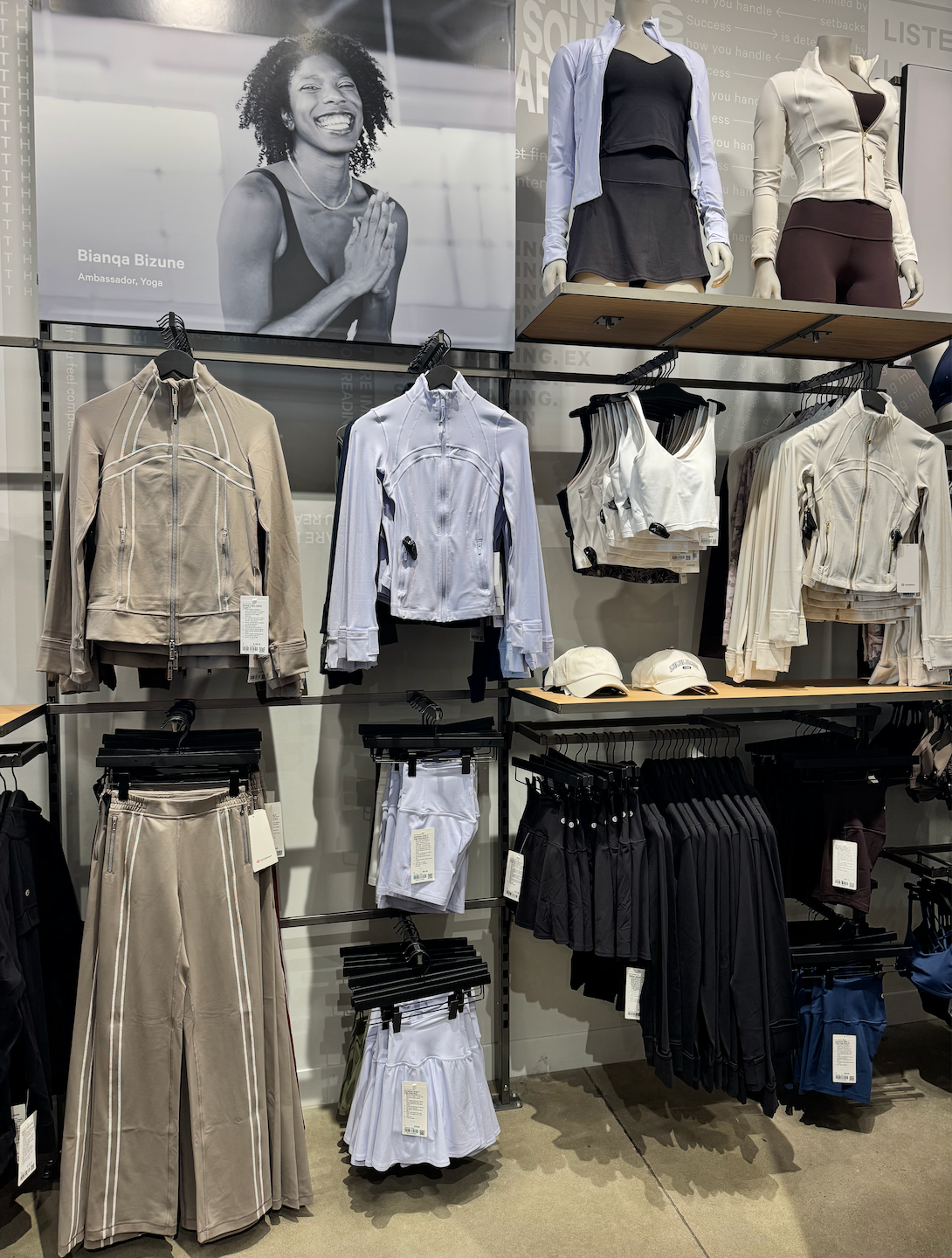 At lululemon, I regularly merchandise our hotwalls and front tables, two of the most high-impact visual zones in the store. These displays are refreshed one to two times per month and are designed to highlight seasonal product launches, key franchises, and storytelling through color, layering, and outfitting. I thoughtfully style mannequins and folded product to drive guest engagement, support business priorities, and create a cohesive first impression that aligns with brand directives while still feeling dynamic and inspiring.